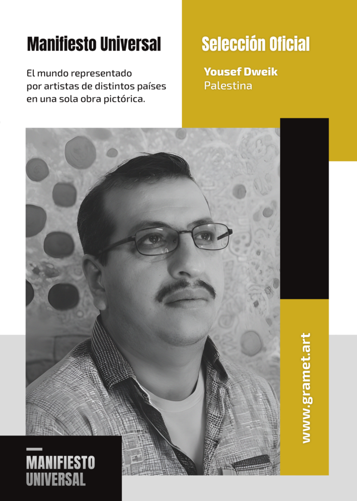 Yousef Dweik, artista de Palestina, ha sido seleccionado oficialmente para integrar el proyecto Manifiesto Universal, que reúne a creadores visuales de distintos países en una gran obra colectiva.
